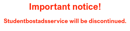 If you have an active account with Studentbostadsservice, information about your account will be shared with SBS (sbsstudent.se). The information that is shared includes your name, Swedish personal number, email address and other contact information as well as the amount of registered days in the queue. Information about previous housing offers will not be shared. After the transition, all remaining personal information from studentbostadsservice.se will be removed. If you remove your account before 1 November 2025, no personal information will be shared with SBS. After the transition, your personal information will be handled in accordance with SBS’ privacy policy (https://sbsstudent.se/hyresgast/integritetspolicy/).